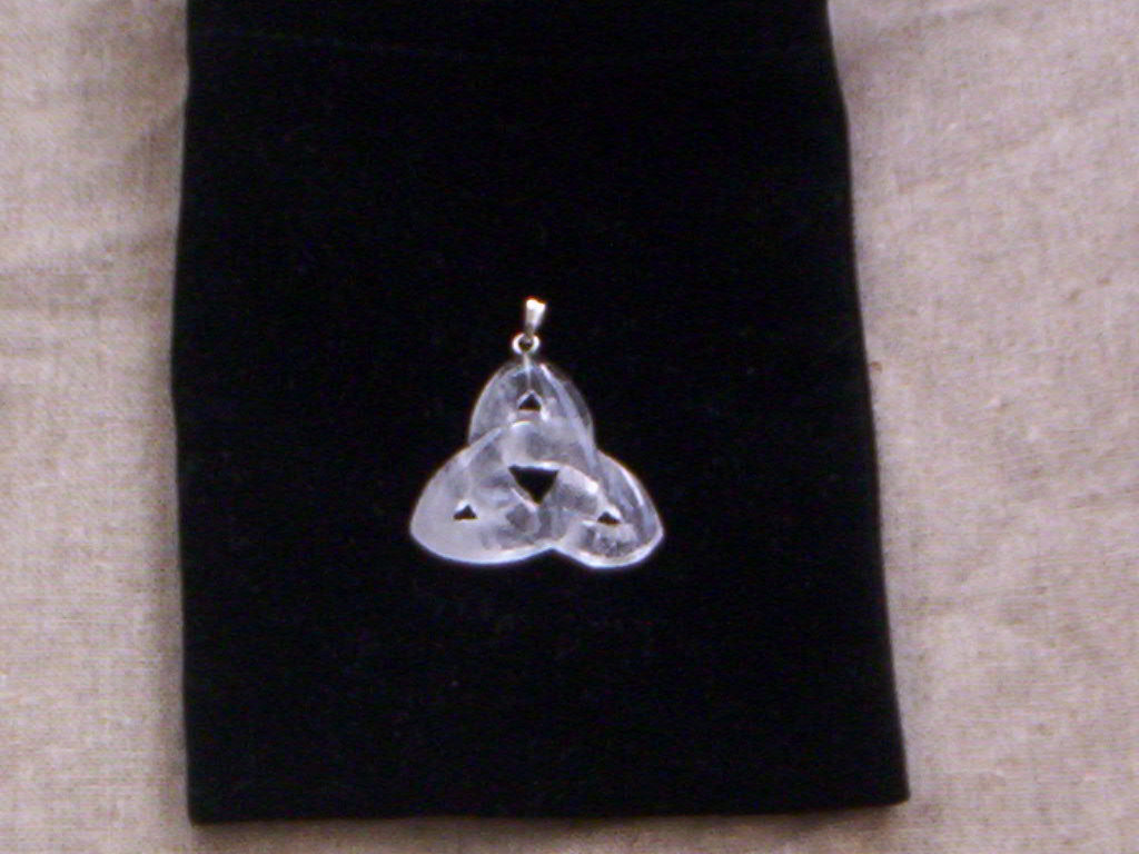 La triqueta es un talismán de origen celta que simboliza la vida, la muerte y el renacimiento. Alude a la triple dimensión de la divinidad femenina: doncella, madre y anciana.
